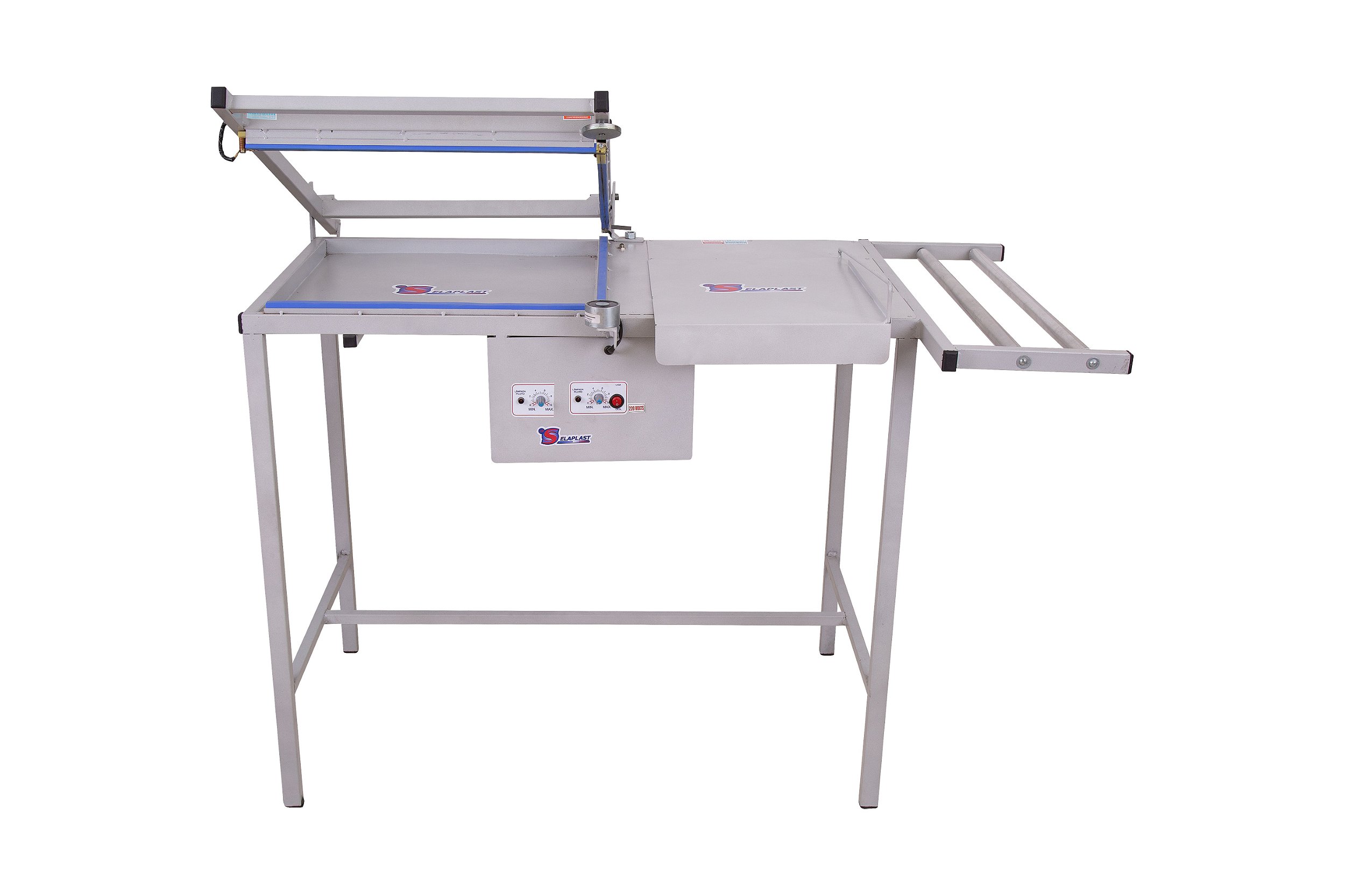 Tem simples manuseio que é regulado por pequenos ajustes. Seu tempo de selagem é inferior a dois segundos. O produto é posicionado manualmente sob do quadro de selagem e o operador da máquina pressiona o quadro contra ele, envolvendo-o com filme e cortando o excesso do plástico.